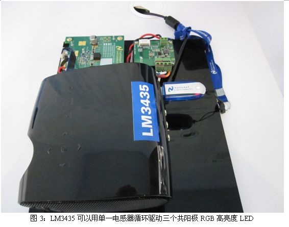針對便攜式投影儀的單電感RGB循環(huán)模式2A LED驅(qū)動(dòng)器LM3435也是美國國家半導(dǎo)體在本屆廣州照明展上重點(diǎn)推出的產(chǎn)品。LM3435可以用單一電感器循環(huán)驅(qū)動(dòng)三個(gè)共陽極RGB高亮度LED,這是LM3435最大的特點(diǎn)。