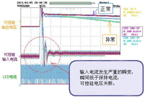[圖7] 可控硅調(diào)光器誤動作時BD555AKFV的LED電流波形