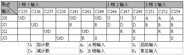 其中輸入點為X0、X1可規(guī)劃成更高速的計數(shù)器,1相輸入可達20kHz,但這兩個輸入點的計數(shù)頻率相加仍必須小于或等于頻寬20kHz的限制。若計數(shù)輸入為2相輸入信號,則計數(shù)頻率約為4kHz。輸入點X2、X3高速計數(shù)器1相輸入可達10kHz。