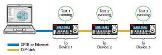 基于對SMU技術(shù)的理解,Mark A Cejer對競爭者推出的SMU產(chǎn)品也作出了自己的評價(jià)。他表示,NI的產(chǎn)品大都基于PXI總線,這在功率上就會受到限制;另外將眾多的板卡放在一個(gè)機(jī)箱中,溫度引起的噪聲影響也是一個(gè)問題。與Agilent的產(chǎn)品相比,吉時(shí)利的SMU由于采用了專利的TSP技術(shù),因此可以將測試腳本程序上載到機(jī)器中,只需一個(gè)指令即可運(yùn)行整個(gè)程序,而Agilent的產(chǎn)品只能逐條讀取和執(zhí)行程序指令,所以吉時(shí)利的SMU可以實(shí)現(xiàn)更高的測試速度;同時(shí)通過TSP-Link虛擬背板技術(shù),可以靈活地實(shí)現(xiàn)多臺SMU的連接,在提高測試吞吐量的同時(shí)實(shí)現(xiàn)很高的測試效率。