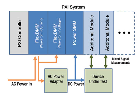 圖2 通用的PXI測(cè)試系統(tǒng)有助于產(chǎn)品實(shí)際能量效率的測(cè)量
