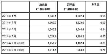 根據(jù)國際半導(dǎo)體設(shè)備材料產(chǎn)業(yè)協(xié)會(SEMI)最新公布的Book-to-Bill訂單出貨報告,2011年9月份北美半導(dǎo)體設(shè)備制造商平均訂單金額為9.848億美元,B/B值(Book-to-Bill Ratio,訂單出貨比)為0.75;代表半導(dǎo)體設(shè)備業(yè)者當(dāng)月份出貨100美元,接獲75美元的訂單。