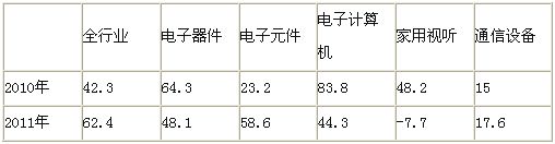 前三季度,電子元件、器件和信息機(jī)電行業(yè)分別完成投資1133、1615和1495億元,同比增長(zhǎng)58.6%、48.1%和120.2%,三個(gè)領(lǐng)域投資占全行業(yè)的65%,比重比去年提高3個(gè)百分點(diǎn),對(duì)全行業(yè)投資增長(zhǎng)的貢獻(xiàn)率分別達(dá)到17%、21%和33%。整機(jī)行業(yè)投資增長(zhǎng)放緩,其中視聽行業(yè)完成投資89.5億元,同比下降7.7%, 比重(1.4%)下降1個(gè)百分點(diǎn);通信設(shè)備行業(yè)完成投資360億元,同比增長(zhǎng)17.6%,比重(5.5%)下降2.1個(gè)百分點(diǎn);計(jì)算機(jī)行業(yè)在平板電腦等新產(chǎn)品帶動(dòng)下,在整機(jī)行業(yè)中增長(zhǎng)相對(duì)較快,同比增長(zhǎng)44.3%,但仍低于全行業(yè)18.1個(gè)百分點(diǎn),其中9月份投資下降20.1%。