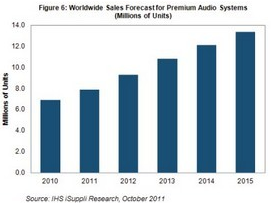 據IHS iSuppli公司的汽車研究專題報告,在技術進步的推動下,預計今年全球車載高檔音響系統(tǒng)銷售額增長率將達到兩位數,接下來的幾年也將保持強勁勢頭。汽車音響本體也在為容納蘋果iPod等移動數字音樂播放器留出更多空間。