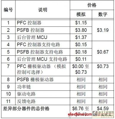 表 1: 300W 模擬與數(shù)字電源物料價格比較