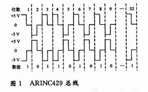 ARINCA29總線是一種單向廣播式數(shù)據(jù)總線,采用雙角屏蔽線傳輸信息,可由兩根獨(dú)立總線實(shí)現(xiàn)雙向傳輸,數(shù)據(jù)傳輸率為:高速傳輸?shù)奈凰俾蕿?00 Kb/s±1%,低速傳輸?shù)奈凰俾蕿?12.0~14.5)Kb/s±1%。ARINC429規(guī)定數(shù)據(jù)傳輸采用雙極性歸零制的三態(tài)碼方式,如圖1所示,即調(diào)制信號(hào)由“高”、“零”和“低”狀態(tài)組成的三電平狀態(tài)。雙極性歸零碼的基本信號(hào)波形中攜帶了位同步信息,位同步是由零狀態(tài)變至“高”或“低”狀態(tài)的這一狀態(tài)變化來識(shí)別。字同步是以傳輸周期間至少有四個(gè)位時(shí)的時(shí)間間隔為基準(zhǔn),緊跟該字間隔后要發(fā)送的第一位起點(diǎn)即為新字的起點(diǎn)。