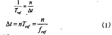 脈沖計(jì)數(shù)法是用標(biāo)準(zhǔn)信號(hào)形成被計(jì)數(shù)的參考時(shí)鐘信號(hào),周期為T(mén)ref,頻率為fref,通過(guò)測(cè)量時(shí)間間隔Δt內(nèi)參考時(shí)鐘信號(hào)的個(gè)數(shù)n,直接顯示Δt的值。