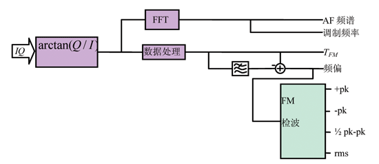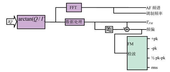 對此數(shù)組進行FFT計算,得到AF頻譜,其基波頻率即調(diào)制頻率fmod ,根據(jù)AF頻譜,可以計算調(diào)制諧波失真和信納比;