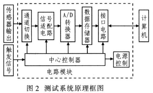 主控器件能否正常工作,是整個系統(tǒng)能否可靠獲得被測參數(shù)的關(guān)鍵。CPLD輸入和輸出引腳的原始電平可預(yù)先設(shè)定,開機(jī)即能達(dá)到預(yù)定電平,狀態(tài)明確。信號傳輸效率高,適合高速采樣場合??删幊踢壿嫼陠卧蜻壿媺K之間的相互連線在同一封裝內(nèi),受外界干擾影響小,電磁兼容(EMC)性能好。綜上所述,CPLD具有邏輯性強(qiáng)、響應(yīng)時間快、程序不易跑飛等特點(diǎn)。為此選用CPLD作為主控器件,設(shè)計盡量簡單可靠的器件內(nèi)部邏輯,以確保整個測試過程系統(tǒng)的正常工作。本系統(tǒng)存儲容量為512 Kxl2 bit,負(fù)延遲為128 Kxl2 bit,采樣頻率為8 kHz。測試系統(tǒng)原理框圖如圖2所示。