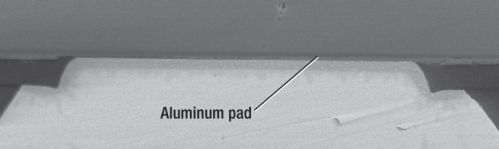設計。WCSP 供應商在從焊盤到區(qū)域陣列范圍 (area array pattern) 的什么地方構建布線所需的 RDL 存在爭議。晶圓加工廠方法(請參見圖 1)中,通常將一個額外增加的鋁層用于這種連接。這種方法的缺點是凸塊支持會占用很多的頂層金屬面積。