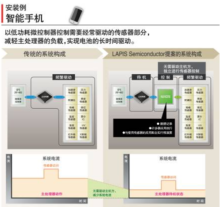 羅姆集團(tuán)旗下的LAPIS Semiconductor面向智能手機(jī)市場(chǎng)開(kāi)發(fā)出了可用更低耗電量綜合控制各種傳感器的、世界最小級(jí)別的低功耗微控制器“ML610Q792”。最近,在手機(jī)中智能手機(jī)所占的比率日益增加,而為了提供新的應(yīng)用和服務(wù)不斷增加的傳感器群,導(dǎo)致智能手機(jī)的電池負(fù)載持續(xù)上升。LAPIS Semiconductor著眼于這種情況,將需要頻繁驅(qū)動(dòng)的傳感器群從主處理器分離,通過(guò)低功耗微控制器進(jìn)行控制,減輕了主處理器的負(fù)載,從而實(shí)現(xiàn)了電池的長(zhǎng)時(shí)間驅(qū)動(dòng)。另外,利用本微控制器的特點(diǎn)——即耗電量低的特性,通過(guò)與無(wú)線通信的組合,亦適用于傳感器網(wǎng)絡(luò)模塊等應(yīng)用。