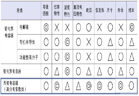 這里通過表1列出了片狀獨(dú)石陶瓷電容器、鋁電解電容、鉭電解電容器的相互比較結(jié)果。片狀獨(dú)石陶瓷電容器的優(yōu)點(diǎn)有兩個。