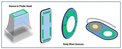 對(duì)于圖1中所示的器件,若能在啟動(dòng)器件或進(jìn)行測(cè)量之前先了解器件與皮膚之間的接觸質(zhì)量等相關(guān)信息,往往較為有利。這些器件包括需要緊靠皮膚的醫(yī)用探針、生物電位電極傳感器或者用于固定導(dǎo)管用管的外殼。為確定接觸條件,可以在注塑生產(chǎn)過(guò)程中將圖中綠色的幾個(gè)容性傳感器電極直接嵌入器件的塑料外殼。主機(jī)微控制器讀取容性傳感器控制器IC上的一些狀態(tài)寄存器,這些寄存器表示容性傳感器離皮膚有多近。隨后,主機(jī)微控制器上運(yùn)行的基本檢測(cè)算法處理狀態(tài)寄存器信息,以確定各傳感器電極與皮膚的接觸是否適當(dāng)。