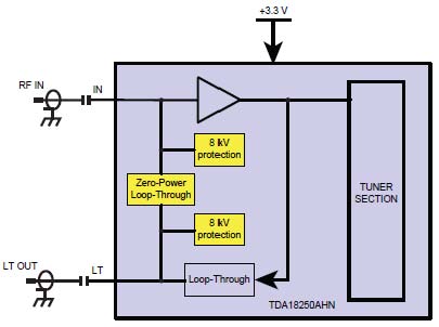 隨著更嚴格的歐盟生態(tài)設(shè)計規(guī)范的實施,廠商和消費者逐漸認識到減少待機功耗的重要性。在每天三小時的機頂盒使用中,環(huán)路輸出所消耗的電能通常比調(diào)諧器本身消耗的還要多。使用TDA18250A和TDA18260A可大幅降低有線機頂盒在待機模式下的功耗,同時使環(huán)路輸出功能仍然保持有效——消費者甚至不用打開機頂盒就能觀看模擬電視。在硅調(diào)諧器內(nèi)集成零功率環(huán)路輸出,意味著恩智浦正在發(fā)布一項重大創(chuàng)新,而這項創(chuàng)新無需使用額外的分立元件或在有線機頂盒的設(shè)計與生產(chǎn)中引入額外的復雜性。憑借這一創(chuàng)新成果,恩智浦將繼續(xù)加強硅調(diào)諧器在價格敏感型應用中相對于傳統(tǒng)金屬調(diào)諧器的優(yōu)勢:無需昂貴的外部元件(如LNA、SAW濾波器及平衡轉(zhuǎn)換器)、尺寸更小、系統(tǒng)更穩(wěn)定、總系統(tǒng)成本更低。