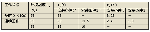 在DC/DC轉(zhuǎn)換器中,MOSFET工作在占空比變化的脈沖狀態(tài),但也不是工作于窄脈沖狀態(tài);工作溫度范圍是-40~85℃。表1、表2中無這種工作條件下的ID及PD值。ID可在下面的范圍內(nèi)選?。?TA=70~85℃時的ID)