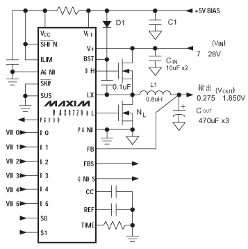 圖6 由MAX8720組成的降壓式DC/DC電路