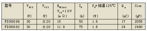 初選快速開關(guān)管FDD6696為開關(guān)管(其Qg為17nC),同步整流管選FDD6682(其RDS(on)=11.9mΩ)。其主要參數(shù)如表4所示。
