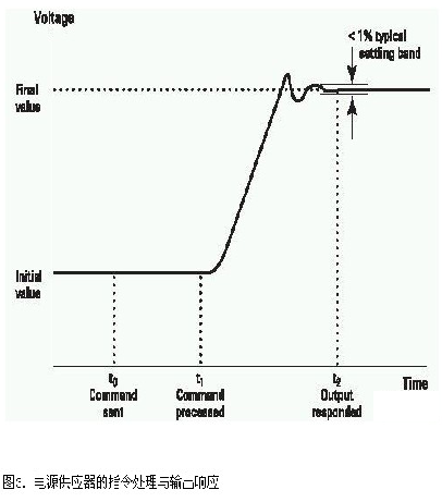 將電源供應(yīng)器的輸出電壓設(shè)定變更為新值時,必須經(jīng)歷幾個步驟,如圖3 所示。這些步驟所花的時間很有限。當電源供應(yīng)器接收到指令時,必須加以處理,因此會有一段指令處理時間。接著,電源供應(yīng)器的輸出會予以回應(yīng)并變更成新的設(shè)定。它在某個穩(wěn)定區(qū)段內(nèi)達到終值所花的時間,即為輸出響應(yīng)時間。1%的穩(wěn)定區(qū)段對ECU 測試來說是合適的。特別需要注意的是下調(diào)設(shè)定時的輸出響應(yīng)時間。許多電源供應(yīng)器都必須依賴真實的DUT 負載來降低電壓,在負載較小的情況下,一些不具下調(diào)設(shè)定器的電源供應(yīng)器可能需要花一秒左右的時間來達到終值。N6752A 電源供應(yīng)器模組內(nèi)建了一個下調(diào)設(shè)定器,能夠加快下調(diào)設(shè)定的速度,而不受負載的影響。在ECU 測試中,上調(diào)與下調(diào)設(shè)定都必須夠快才行?! ?br />