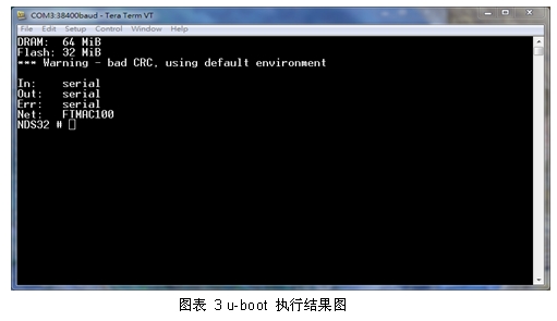 patch 完成的u-boot source code 可以產(chǎn)生ROM版的u-boot image,直接開機后的執(zhí)行結(jié)果如圖表3所示。