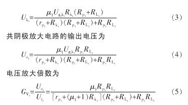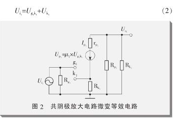 該電路的微變等效電路如圖2所示,這里將電子管看成是受控電壓源。圖中,輸入電壓可表示為: