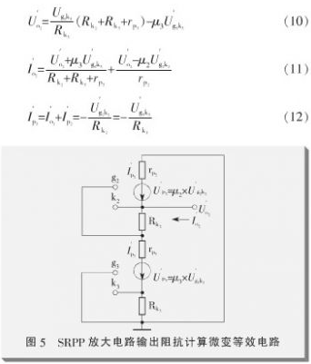 從式(11)~(13)可計(jì)算得到SRPP放大電路的輸出阻抗為: