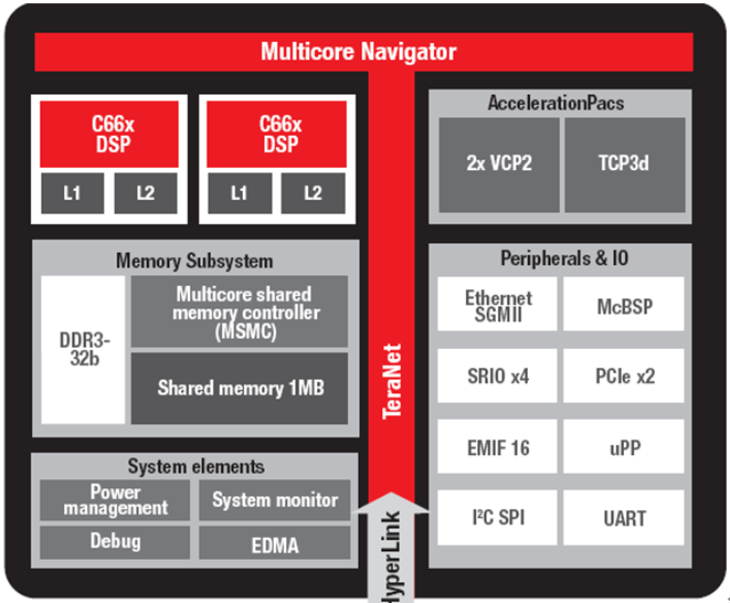 支持與其它 KeyStone 架構器件高達 50GBaud 互連的 HyperLink 可實現(xiàn)資源擴展;
