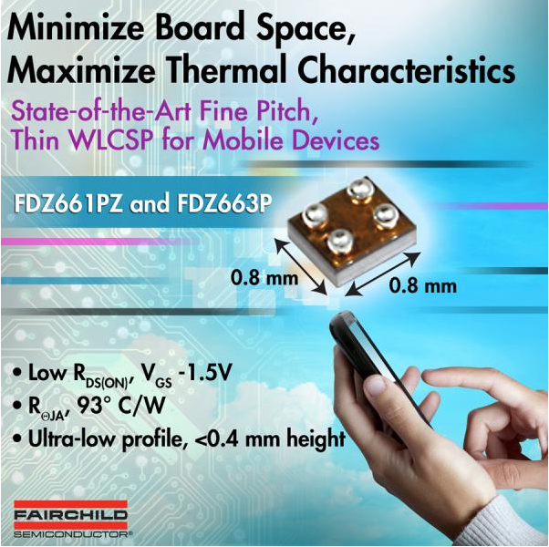 便攜設備的設計人員面臨著在終端應用中節(jié)省空間、提高效率和應對散熱問題的挑戰(zhàn)。為了順應這一趨勢,飛兆半導體公司(Fairchild Semiconductor)開發(fā)了FDZ661PZ和FDZ663P P溝道、1.5V規(guī)格的PowerTrench®薄型0.8mm x 0.8mm WL-CSP MOSFET器件。