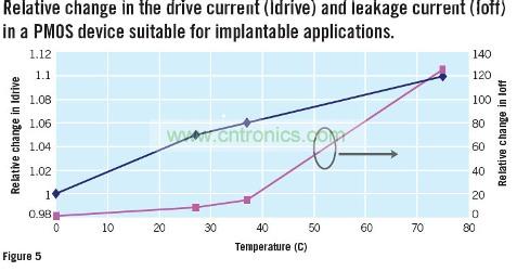 圖5:PMOS設(shè)備中漏電流與驅(qū)動電流隨溫度變化