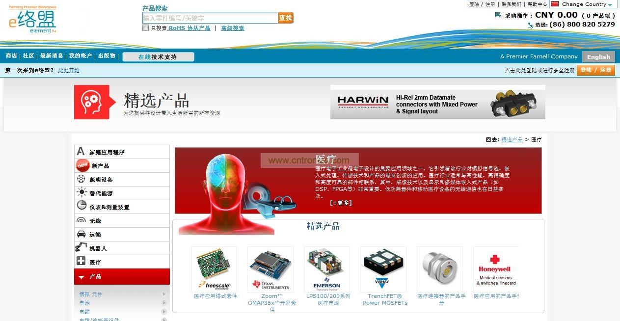 高性能、高精度和高可靠性部件對醫(yī)療行業(yè)至關重要。e絡盟的醫(yī)療子站率先采用創(chuàng)新模擬信號鏈、嵌入式處理和傳感技術以及世界領先供應商的產品,如Altera、Fischer、松下、德州儀器和XP電源。醫(yī)療成像在亞太區(qū)采用廣泛,尤其是顯示與嵌入式多媒體產品,如DSP和FPGA。低功耗設備和移動醫(yī)療設備的無線通信也日益普及。