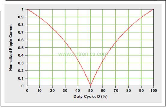 圖5 標(biāo)準(zhǔn)化輸入RMS紋波電流為占空比的函數(shù)