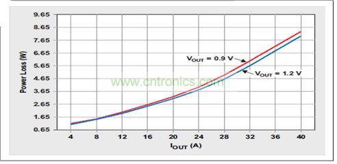 由于每個(gè)相位的功率級(jí)電流更低,多相實(shí)現(xiàn)的輸出濾波器要求也隨之降低。對(duì)于一款40-A 二相解決方案來說,向每個(gè)電感提供的平均電流僅為20A。相比40-A 單相方法,由于平均電流和飽和電流更低,電感和電感器體積都大大減小。
