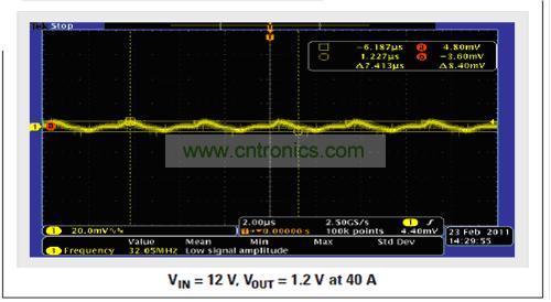 由于每個(gè)輸出電感中存儲(chǔ)的能量降低,負(fù)載瞬態(tài)性能隨之提高。電流抵消帶來的紋波電壓降低,幫助實(shí)現(xiàn)了最小輸出電壓過沖和下沖,因?yàn)樵诃h(huán)路響應(yīng)以前許多周期都已結(jié)束。紋波電流越低,干擾越小。