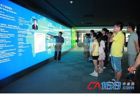 對臺達集團有了一定了解之后,南京工程學院師生一行人來到大樓的展廳參觀。臺達展廳展出了臺達在自動化、新能源、網(wǎng)絡動力、軌道交通等領域的最新技術和產(chǎn)品。學生們對于這些產(chǎn)品表現(xiàn)出了極大的興趣,他們有的仔細研讀方案介紹,有些積極提問,紛紛用自己的方式珍惜這個難能可貴的參觀學習機會。