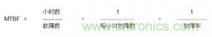 想要將一個部件的材料清單(BOM)與另一個部件的材料清單進行比較會怎么樣呢?能不能將每個元件的MTBF簡單地加在一起,來確定總體可靠性呢?可惜的是:不可以。這是因為MTBF代表的是出現(xiàn)故障的小時數(shù),按照加法計算是不起作用的。然而,故障率,一個代表每小時發(fā)生故障的次數(shù),是可以相加。慶幸的是將MTBF轉(zhuǎn)換成故障率僅是一個很簡單分數(shù)關系。以下是公式: