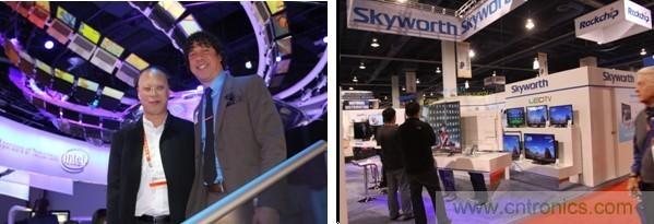 (左圖為市平板顯示行業(yè)協(xié)會(huì)副秘書長(zhǎng)梁毅與Inter公司的victor合影;右圖為中國(guó)企業(yè)創(chuàng)維展位)