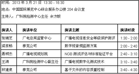 在同期舉行的“CCBN 2013廣播影視發(fā)展論壇”的“廣播電視測(cè)試技術(shù)與儀器”分會(huì)場(chǎng)上,泰克公司還將作為獨(dú)家測(cè)試測(cè)量?jī)x器提供商受邀參與主題為“廣播電視新技術(shù)體系下,廣電行業(yè)設(shè)備與系統(tǒng)檢測(cè)與測(cè)試的未來(lái)發(fā)展趨勢(shì)”的研討,并帶來(lái)兩場(chǎng)泰克測(cè)試方案公開(kāi)課。