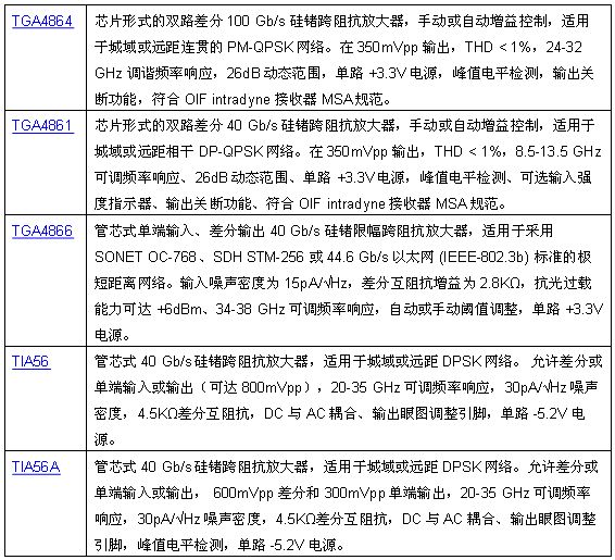 TriQuint推出五款新型跨阻抗放大器,擴(kuò)充其光纖市場(chǎng)