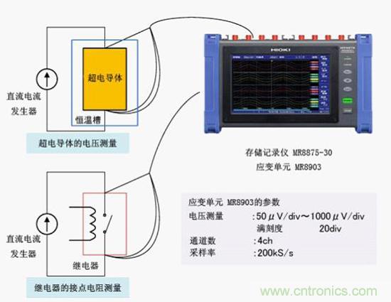 言歸正傳,此次實測案例的重點是記錄設(shè)備的特性評估、超電導(dǎo)材料的評估、接點的電壓下降(接點電阻測量)等μV等級的電壓。而且還需要同時測量溫度和其他電壓。