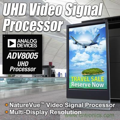【導(dǎo)讀】Analog最近新出一款超高清(UHD)視頻信號(hào)處理器,這款處理器可以在SD 、ED 、HD以及UHD等視頻格式之間進(jìn)行上下轉(zhuǎn)換。UHD NatureVue™ ADV8005視頻信號(hào)處理器,可為兩個(gè)同步視頻流提供多種屏幕分辨率,適用范圍十分廣泛。