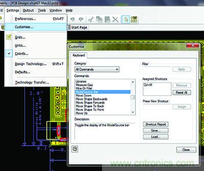 6.0版新增的自定義快捷鍵功能可實(shí)現(xiàn)更加靈活的用戶界面定制。用戶可通過(guò)自定義配置DesignSpark PCB的快捷方式與熱鍵,從而提高軟件使用的簡(jiǎn)便性與快捷性。這一點(diǎn)對(duì)于已經(jīng)習(xí)慣于其它PCB設(shè)計(jì)工具特定快捷操作的用戶尤其明顯。