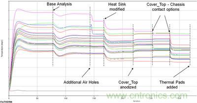 為提升整體設(shè)計做出調(diào)整,如產(chǎn)品的機(jī)械、電氣和 EMC 性能間的協(xié)調(diào)以及溫度限制、可制造性或成本等其他限制條件,有利于實現(xiàn)連續(xù)改進(jìn)。對每個學(xué)科而言,這些改進(jìn)可以看作是對基礎(chǔ)設(shè)計的完善。在進(jìn)行熱設(shè)計時,則可視為對監(jiān)控點溫度的調(diào)整,從而與將用作測量物理原型的傳感器的位置相匹配。