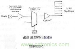 這 是最廣泛使用的方法,即在器件末使用時(shí)截?cái)鄷r(shí)鐘來(lái)降低功耗。然而正確地截?cái)鄷r(shí)鐘十分重要。門(mén)控信號(hào)與門(mén)控邏輯應(yīng)正確地設(shè)計(jì),以消除時(shí)鐘線(xiàn)上的任何毛刺。再 者,門(mén)控邏輯會(huì)增加時(shí)鐘的延時(shí),影響建立時(shí)間與保持時(shí)間。由于抗熔斷是一種極快速的技術(shù),引入的延時(shí)很小且容易控制。在使用時(shí)鐘門(mén)控時(shí),用戶(hù)應(yīng)仔細(xì)地安置 門(mén)控邏輯,將時(shí)鐘網(wǎng)絡(luò)的延時(shí)降低到最小限度。典型的門(mén)控邏輯如圖3所示。
