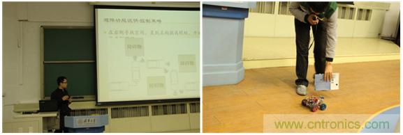經(jīng)過激烈的角逐,進入決賽的七支隊伍在決賽階段依次為大家展示了他們設計的作品,“Hercules汽車智能避障安全系統(tǒng)”、“主動避障智能小車”、“基于PID的牽引和制動力控制”等作品都各具特色。評委針對每一支隊伍的作品和展示進行了點評,給各個作品的不足之處都提出了建議,在場所有選手都受益匪淺。最終由王翔宇同學帶領的團隊所設計的“分布式驅(qū)動小車的安全性設計”憑借新穎的設計和完善的算法獲得了本次大賽的一等獎。