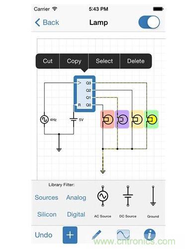 《電子電路仿真和設(shè)計 iCircuit》是首屈一指的電路設(shè)計和試驗應(yīng)用程序,功能非常強大,這是學(xué)生,業(yè)余愛好者和工程師的完美伴侶。其先進的模擬引擎可以處理模擬和數(shù)字電 路和實時分析的功能 。只要您會任何CAD程序,您就可以使用它:添加元素,它們連接在一起,并設(shè)置其屬性,但iCircuit不像其他CAD程序,因為它始終是模擬。這就像 與實際電路的工作 。你不停止進行測量,或花很多時間配置。雖然這個只是玩玩,但他像真實的電路一樣!有超過30種元件,你可以用它來構(gòu)建電路。從簡單的電阻,開關(guān),晶體 管,數(shù)字門。您還可以模擬探頭檢測周圍的電路,有即時讀取電壓和電流的萬用表。如果你想看經(jīng)過一段時間數(shù)值是如何變化的,那么你可以使用內(nèi)置示波器。