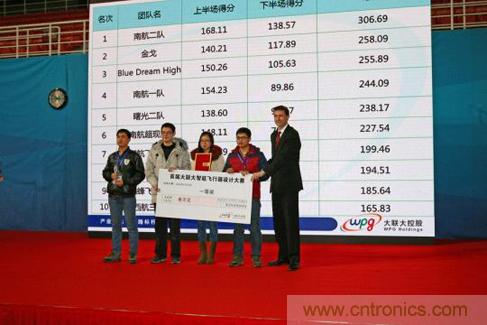 本次大賽評審委員會由大聯(lián)大、白金級贊助商恩智浦(NXP)和行業(yè)內(nèi)專家共同組成,經(jīng)過對所有參賽飛行器軟硬件架構(gòu)、外觀設(shè)計(jì)、現(xiàn)場飛行平穩(wěn)度和精準(zhǔn)度等方面的綜合考量,來自南京航空航天大學(xué)南航二隊(duì)參賽隊(duì)的四軸飛行器凌空號作品表現(xiàn)優(yōu)異,以306.69的總分最終獲得了本屆大賽的總冠軍。北京科技大學(xué)的金戈參賽隊(duì)和鄭州航空工業(yè)管理學(xué)院的Blue Dream High參賽隊(duì)分別獲得了亞軍和季軍。