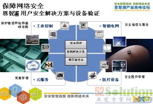 從以上圖中可以看到NXP保障網絡安全的方案,從工業(yè)控制,智能電網,醫(yī)療設備和云服務方面。另外,NXP也提供以終端對終端的安全連接方案在互聯(lián)汽車、物聯(lián)網和便攜的可穿戴式應用。