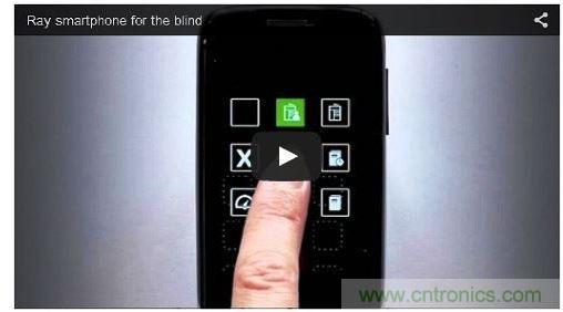 以色列新創(chuàng)公司Project Ray致力于為視障者設(shè)計(jì)實(shí)用的移動(dòng)終端,打造號稱全球唯一的“整合因特網(wǎng)服務(wù)多用途輔具”──包括Ray應(yīng)用程序以及Ray系列 Android 平臺特制手機(jī)。Ray系列手機(jī)在2012年就已問世,為Project Ray與高通(Qualcomm)以及以色列視障/身障者中央圖書館(Central Library for the Blind, Visually Impaired, and Handicapped)的合作成果。