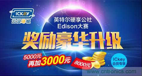 英特爾Edison設(shè)計(jì)大賽是一個(gè)尋找國(guó)內(nèi)新生創(chuàng)客的舞臺(tái)。ICkey(云漢芯城)此次應(yīng)邀加盟英特爾Edison設(shè)計(jì)大賽,將為大賽全國(guó)30強(qiáng)選手每人提供價(jià)值5000元的電子元器件及開(kāi)發(fā)板等產(chǎn)品的資源贊助。(如果你是ICkey社區(qū)會(huì)員并進(jìn)入大賽全國(guó)30強(qiáng),更有機(jī)會(huì)贏得最高價(jià)值8000元的資源贊助獎(jiǎng)勵(lì)!詳情請(qǐng)見(jiàn)http://bbs.ickey.cn/group-topic-id-43691.html)