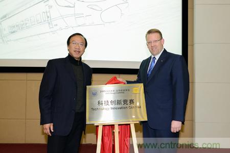 圖一從左至右:同濟大學(xué)儲志剛書記浩亭公司Edgar-Peter Duening先生與共同為競賽的開幕揭牌