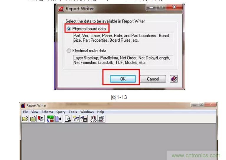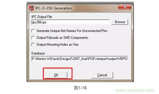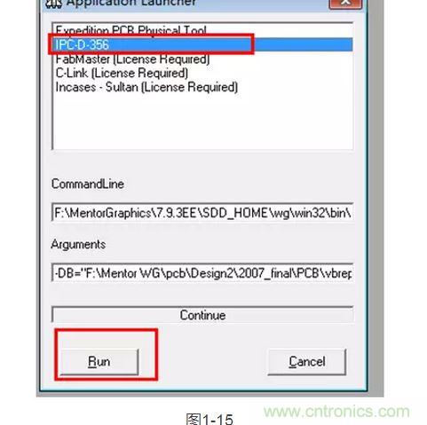 選擇菜單命令Output->Report Writer,在彈出窗口如圖1-13,選擇Physical board data,然后點(diǎn)擊OK會(huì)彈出如圖1-14窗口,在菜單欄中選擇Tools->Laucher,則會(huì)彈出如圖1-15窗口,選擇IPC-D-365,然后點(diǎn)擊Run,在彈出如圖1-16窗口點(diǎn)擊OK按鈕,IPC365文件已生成,然后關(guān)閉窗口。